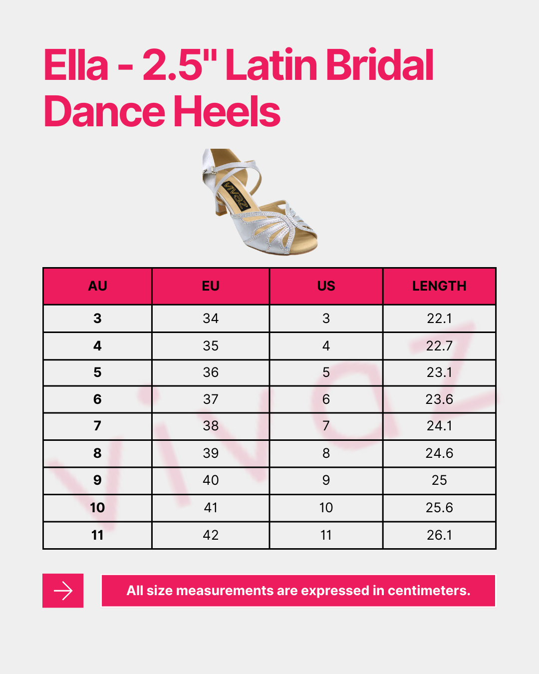 Made to EU shoe sizing, Ella offers a firm fit. As dance shoes are designed to be firm and snug, we recommend ordering your usual shoe size or one size up for wider feet.