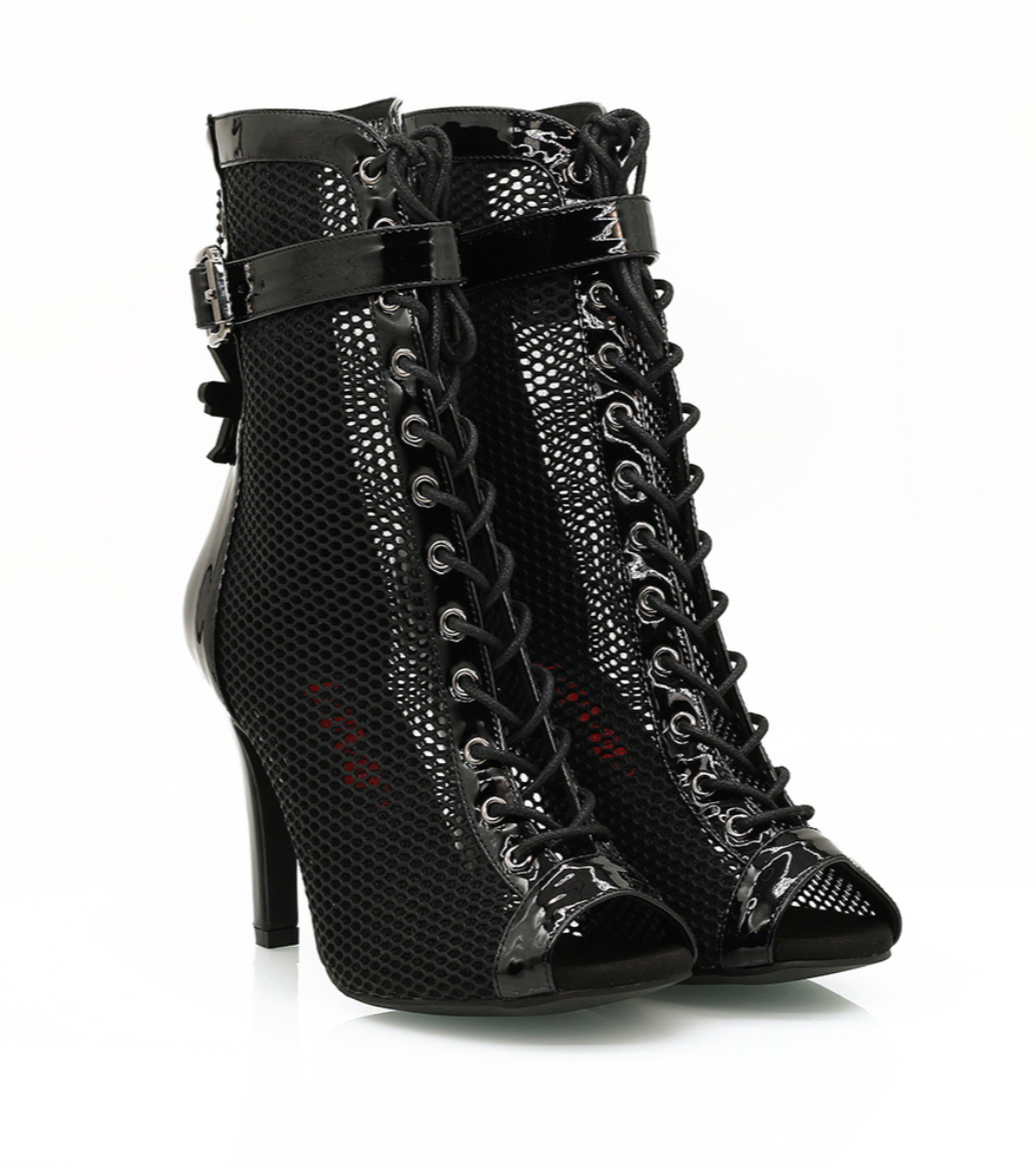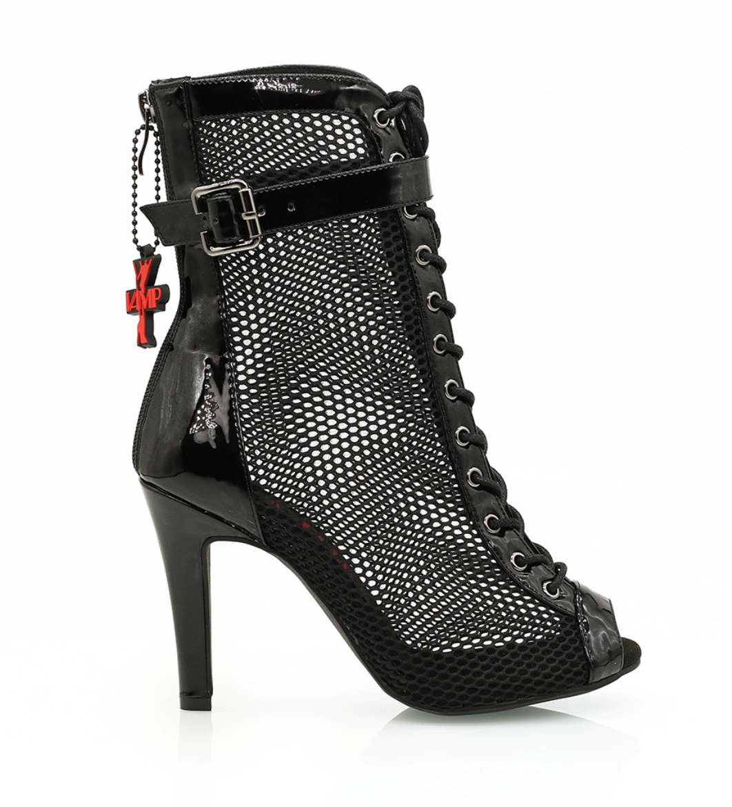 Introducing Vandal, a striking amalgamation of energy, style, and unapologetic confidence. Command attention in these captivating heels that showcase a dynamic mesh and PU vegan leather blend in a bold and timeless black. Crafted for both style and comfort, Vandal features an adjustable buckle and lace-up closure for a personalised fit, ensuring precision and ease as you make your mark on the dance floor.